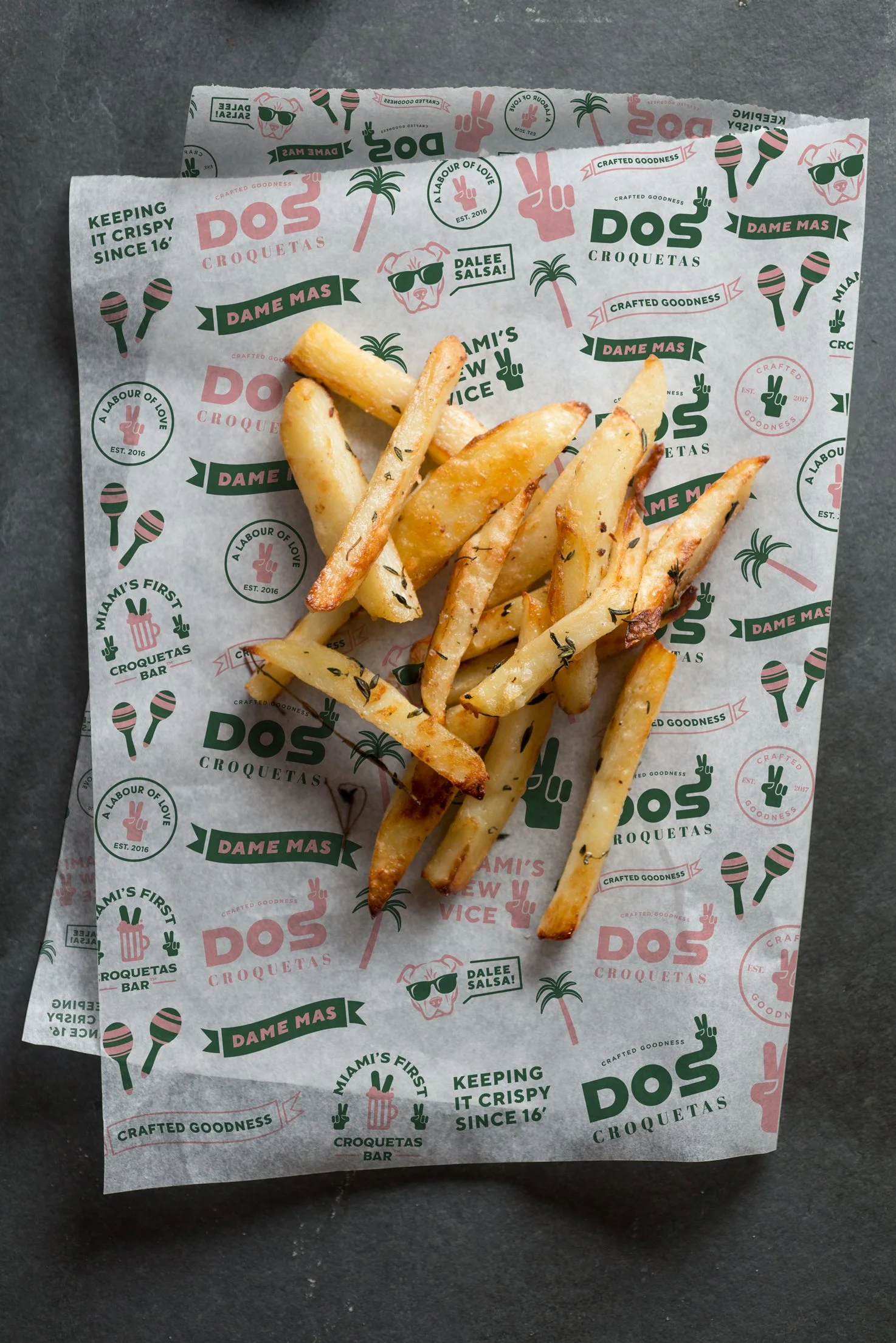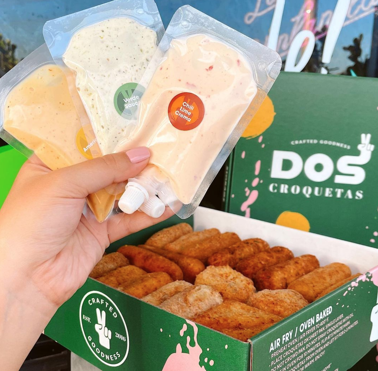 The name itself emerged while waiting in line at a renowned Miami Cuban eatery. The refrain "dame dos croquetas" echoed – a colloquial plea for "give me two croquetas." Teaming up with us, we meticulously forged a brand that's not just authentic and remarkable, but instantly recognizable, tripling sales after rebranding